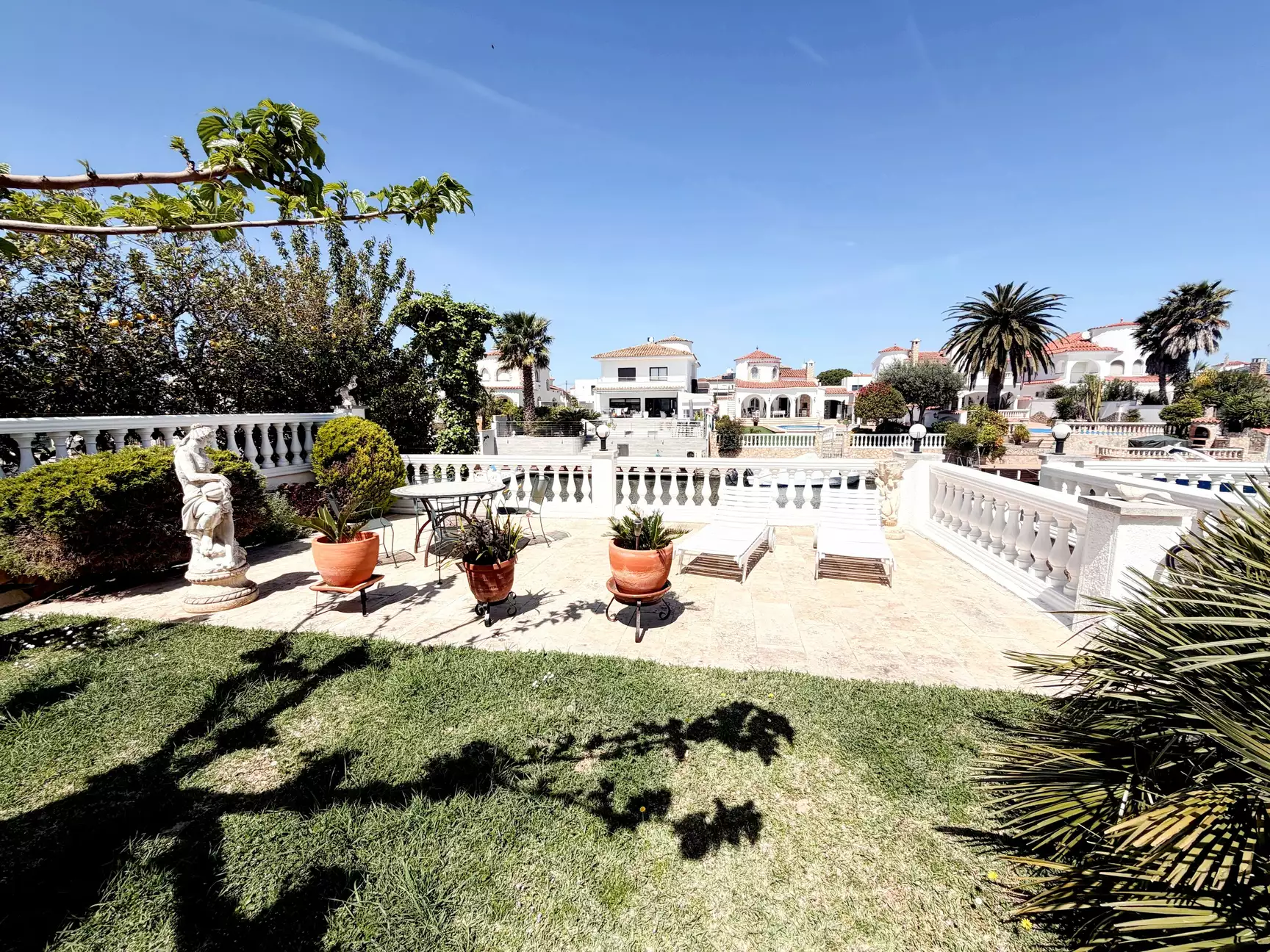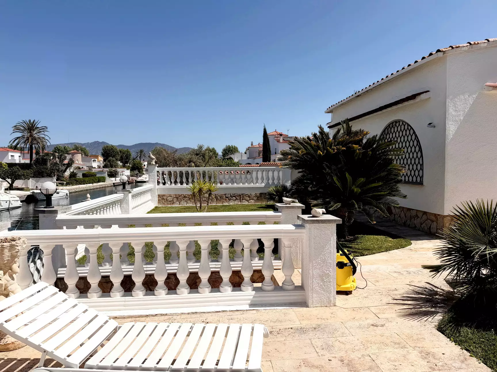 Villa exceptionnelle de 260 m² de plain-pied, située au bord d'un large canal et à proximité de toutes les commodités. La propriété dispose de 3 chambres, 3 salles de bain, un grand studio indépendant et un garage.À l'entrée, vous accédez à une spacieuse terrasse orientée au sud avec piscine et garage. La villa comprend une suite principale, ainsi que deux autres chambres doubles, une salle de bain et wc séparé pour les invités. Le vaste salon et la cuisine entièrement équipée offrent un environnement fonctionnel et chaleureux.